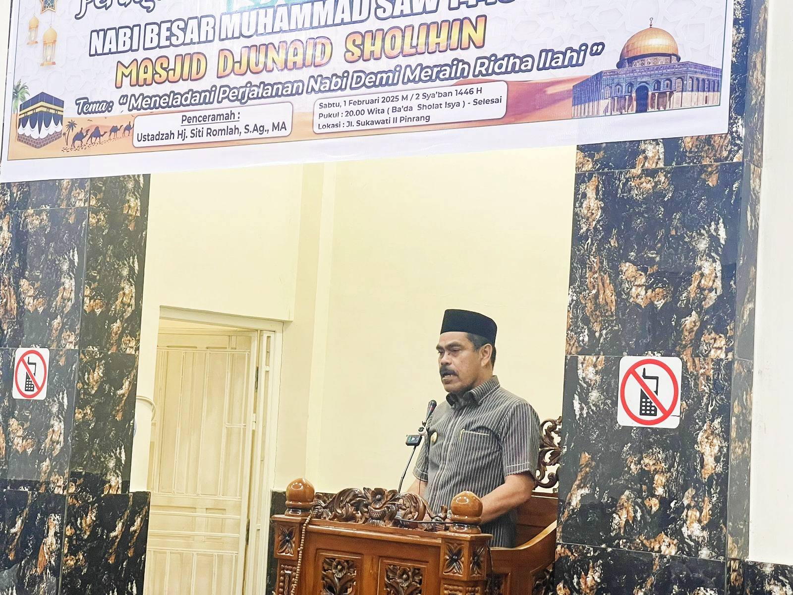 Pinrang – Penjabat (Pj) Bupati Pinrang, Ahmadi Akil, menghadiri peringatan Isra Mi'raj Nab...