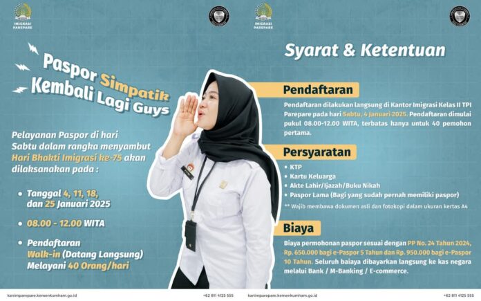 Kantor Imigrasi Kelas II TPI Parepare mendapat apresiasi dari masyarakat atas program layanan pas...